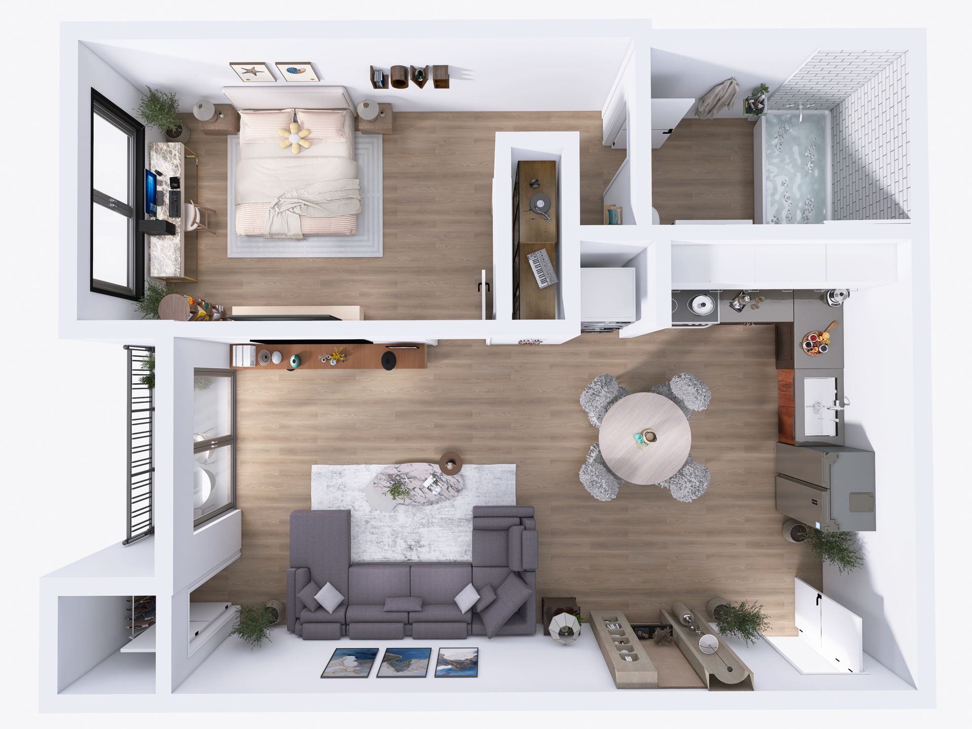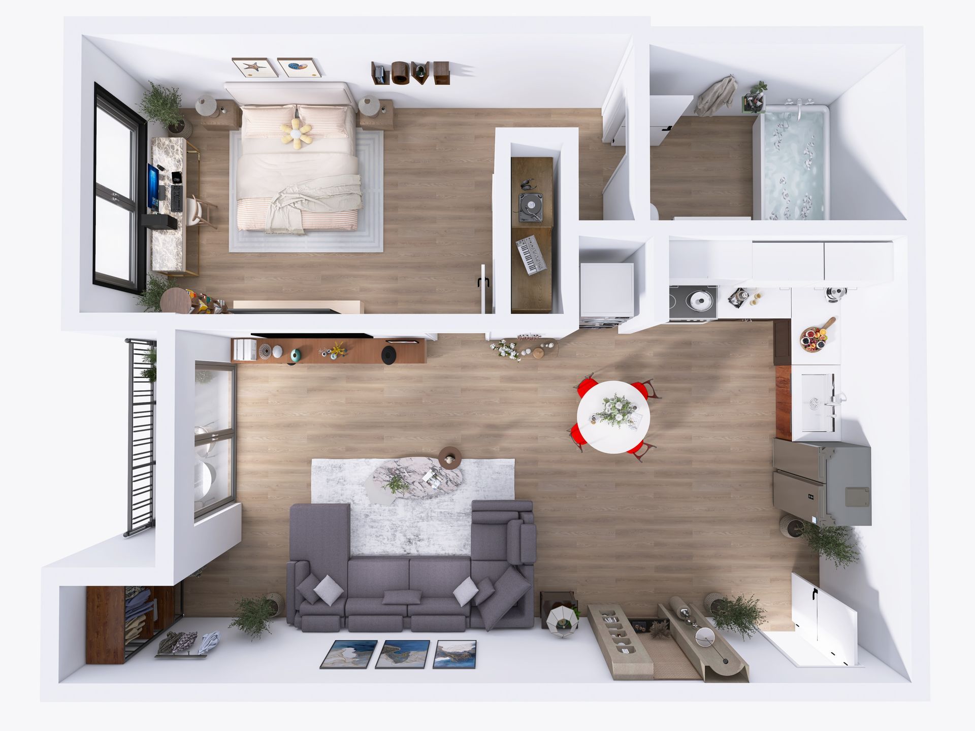 Open, light-filled Studios, 1- and 2-bedroom apartment homes with smart layouts, sweeping views, and amenities designed for comfort and convenience