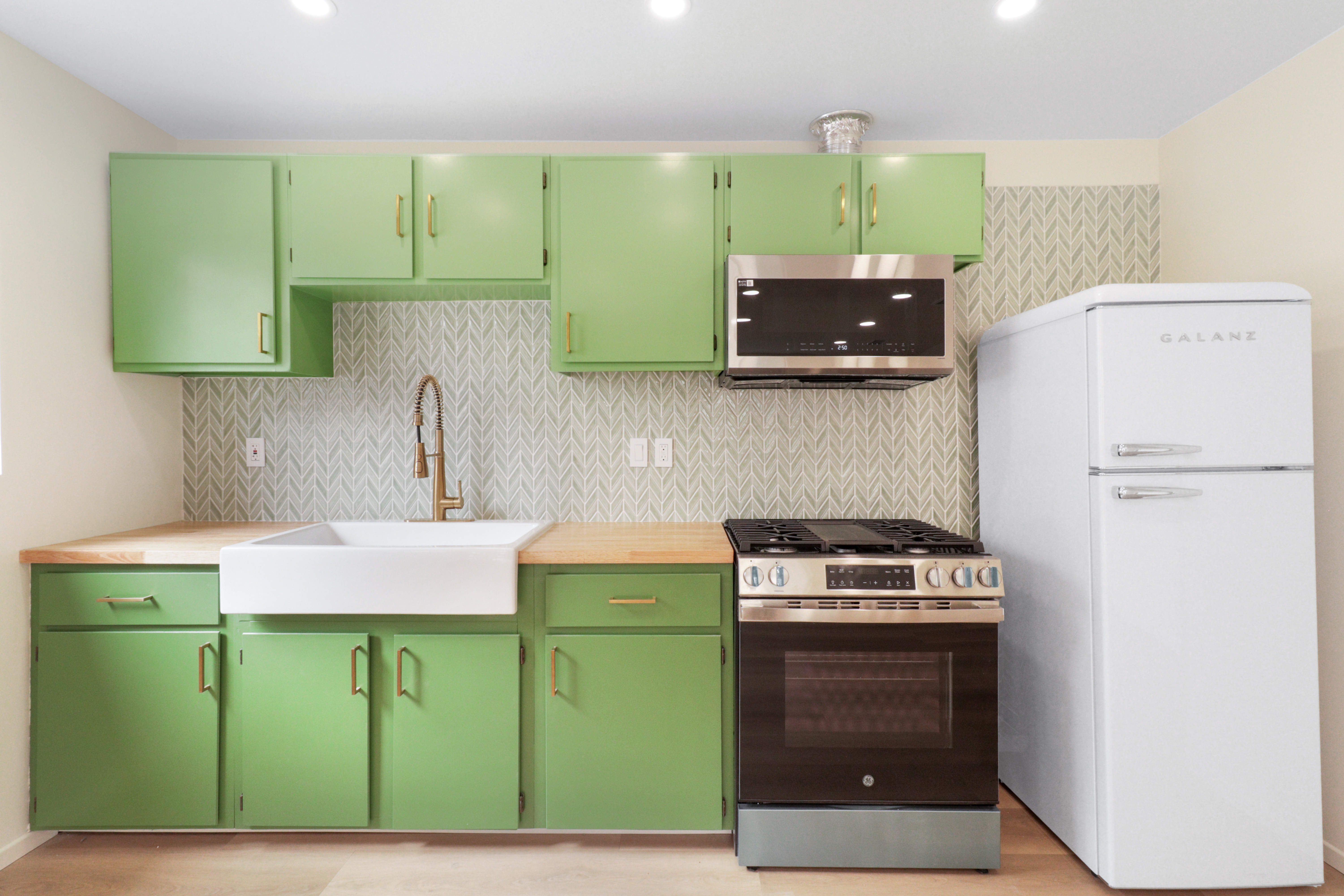 🍳 Kitchen equipped with an oven, microwave, and stove