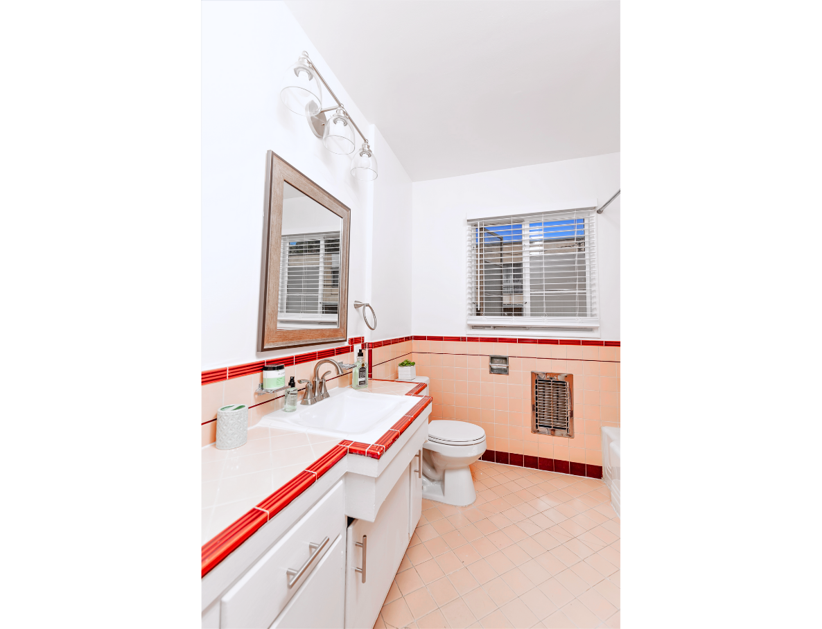 This apartment home features original crown moldings, hardwood floors, large windows, vintage brightly colored tile, original window framing, lots of cabinets and closet space. This unit is a corner unit and only shares one wall. It has natural light steaming the south, east, and west-facing windows.