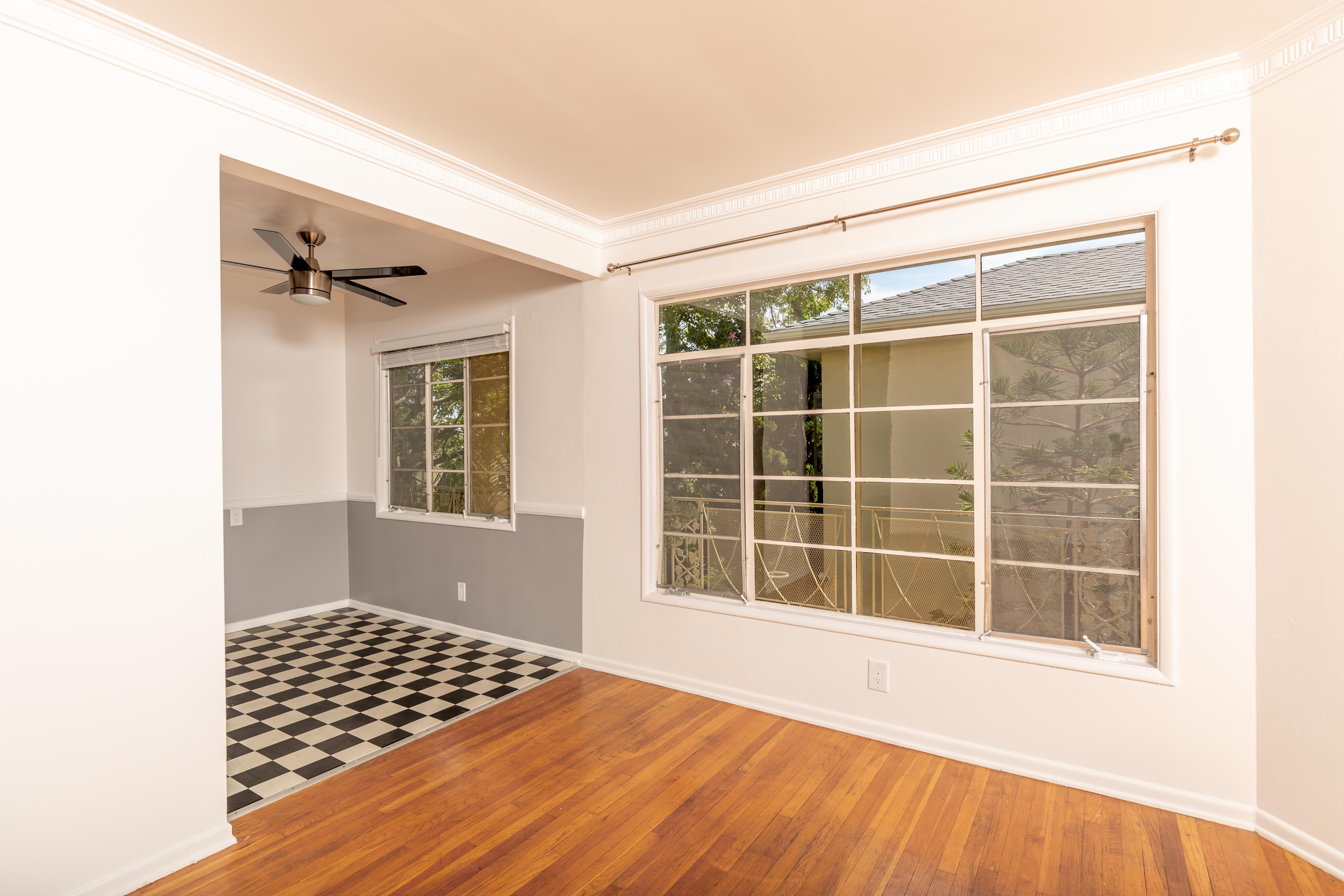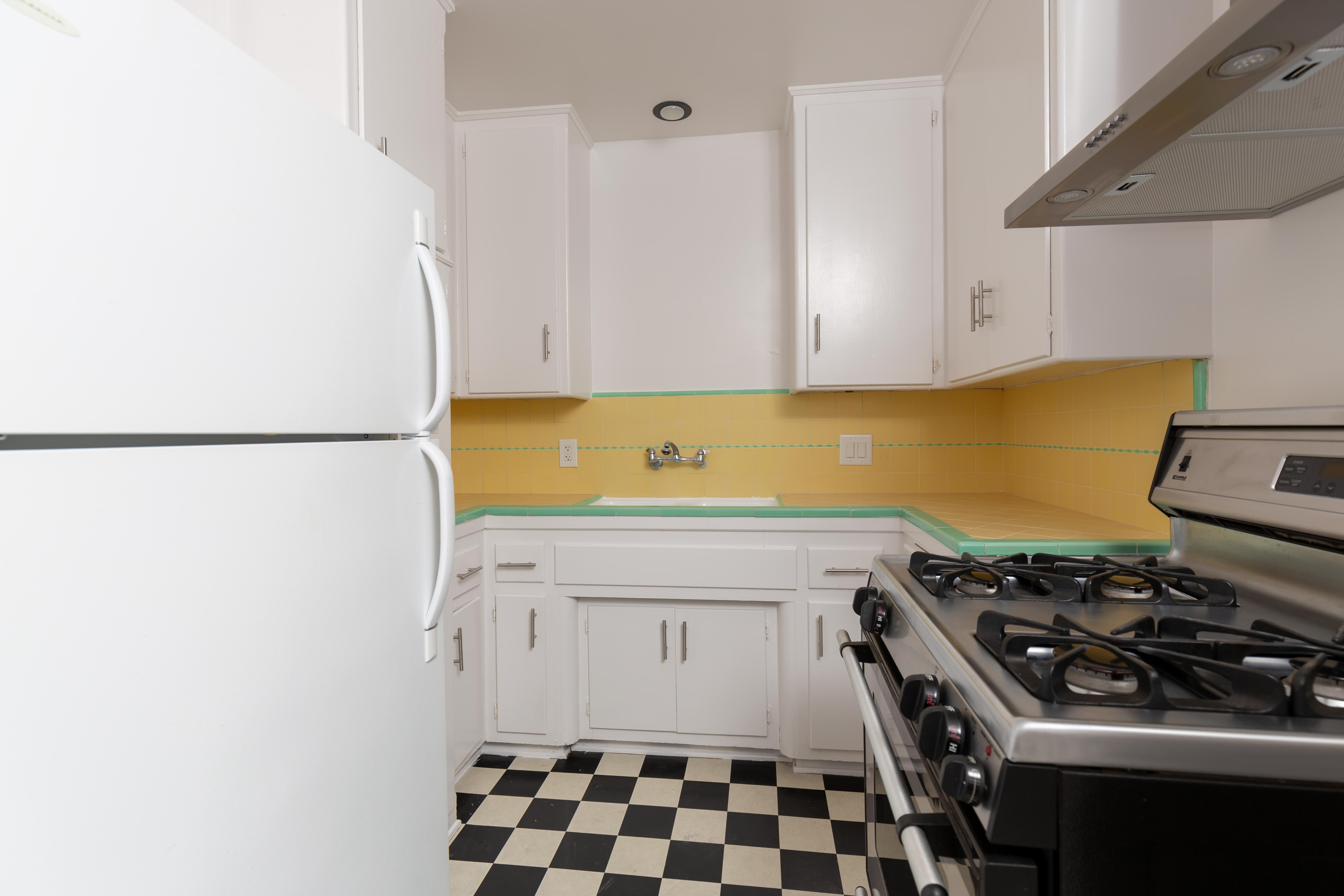 This updated vintage-style unit is beyond charming and cute! It features hardwood floors, large windows, vintage tile, lots of cabinet and closet space, and looks out to our beautiful lushly landscaped courtyard.