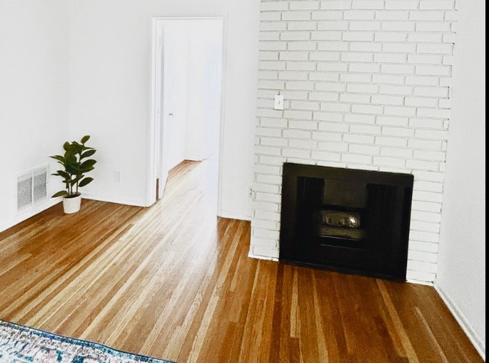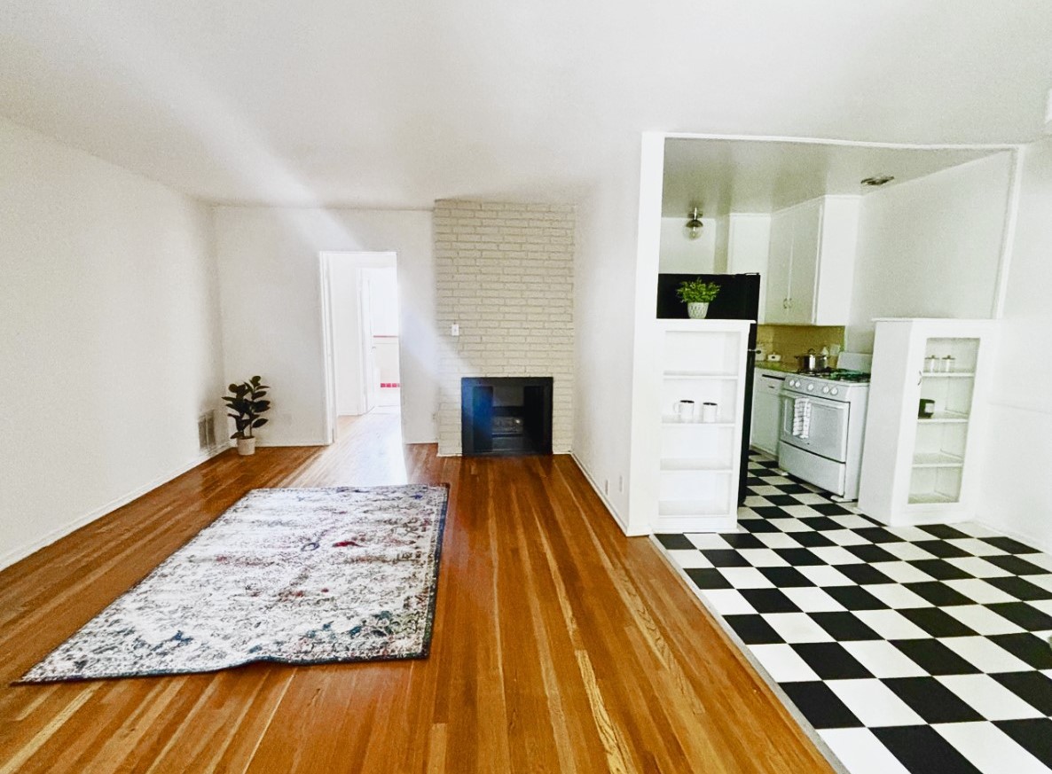 This updated vintage-style sunny, large unit is beyond charming and unique! It features hardwood floors, large windows, vintage tile, lots of cabinets, and closet space, and looks out to our beautiful lushly landscaped courtyard. It even has a gorgeous painted brick fireplace!