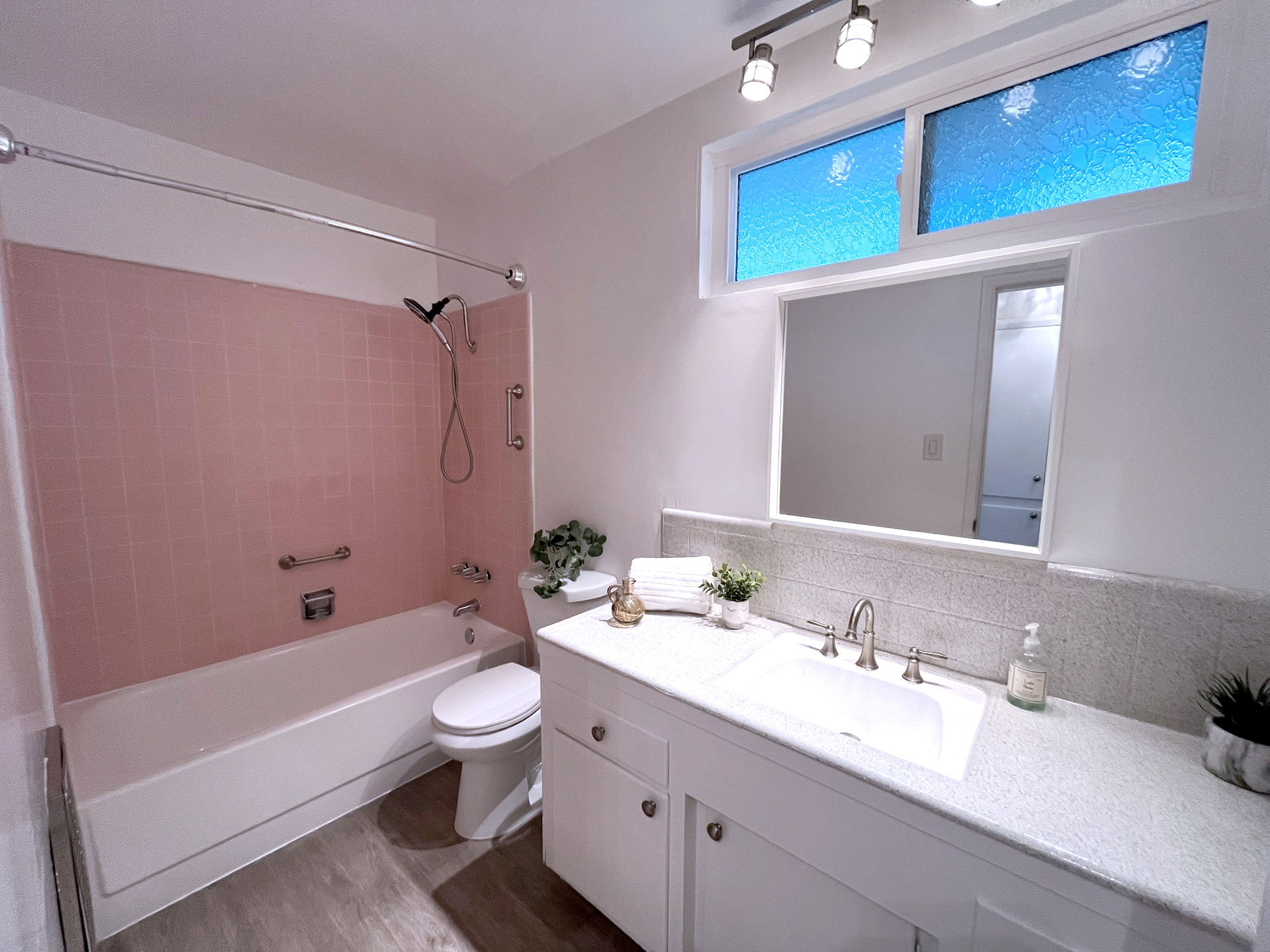 This unit is features a spacious 2 bedroom! Sunny, modern and features hardwood-style floors, large windows, vintage tile, lots of cabinet and closet space, and new lighting and plumbing fixtures.