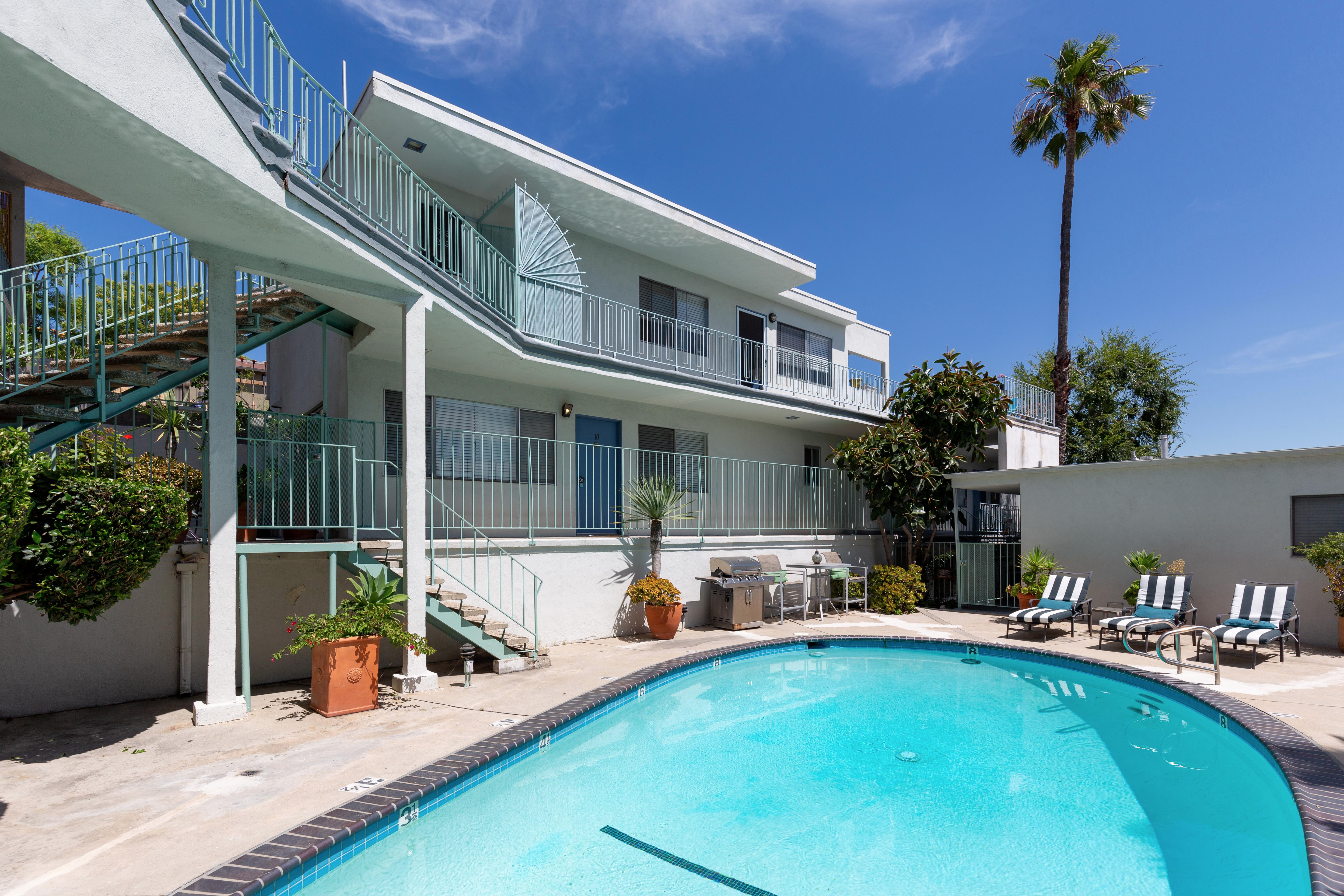 Our professionally managed property features lush landscaping, sparkling pool, lovely courtyard area/ BBQ area, on-site laundry and subterranean parking. Located on a small residential street, short distance from 365 Whole Foods, Starbucks, Trader Joe’s, Gelson’s, and lots more shopping, dining and entertainment!