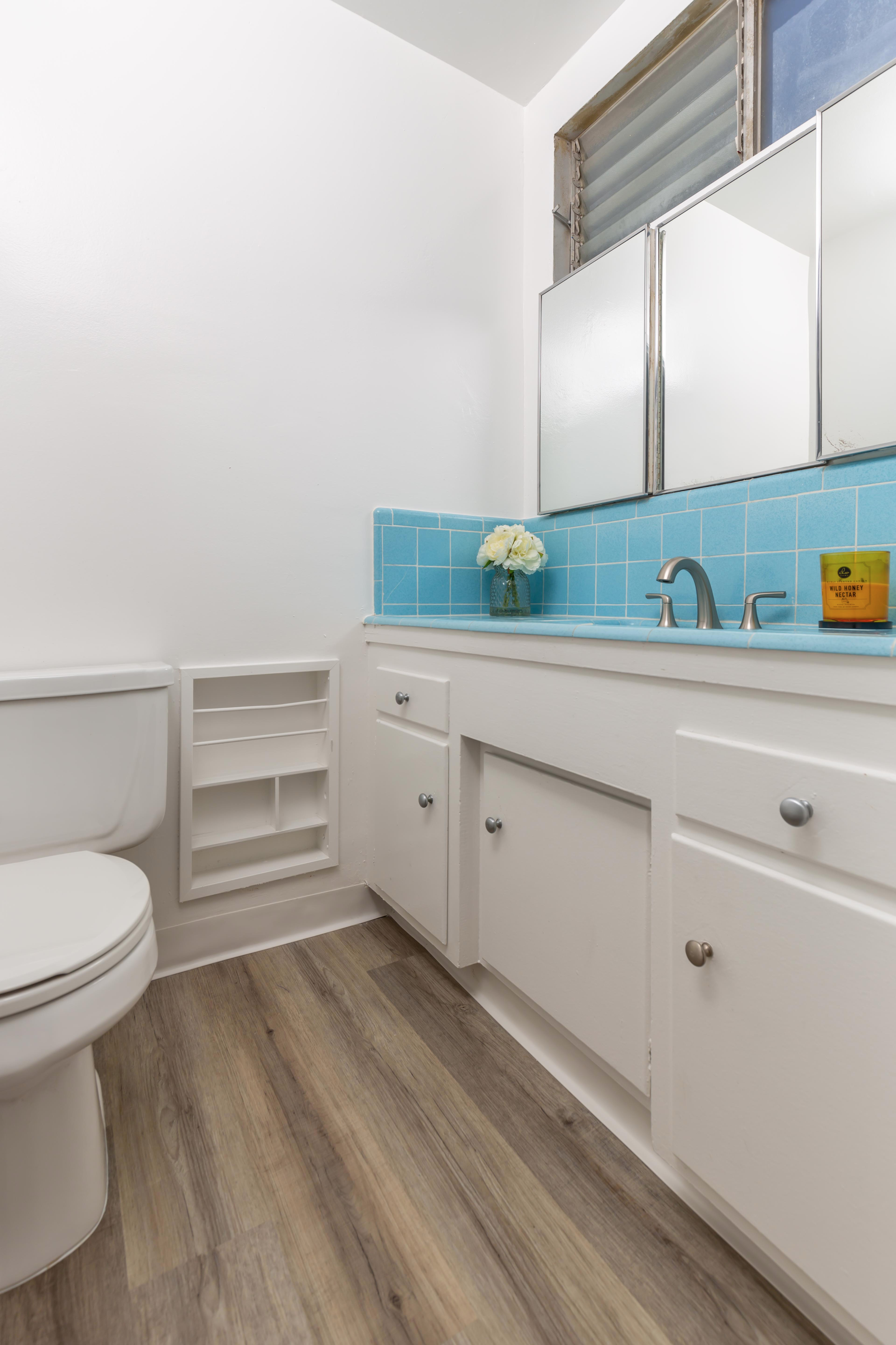 This unit is features a spacious 2 bedroom! Sunny, modern and features hardwood-style floors, large windows, vintage tile, lots of cabinet and closet space, and new lighting and plumbing fixtures.