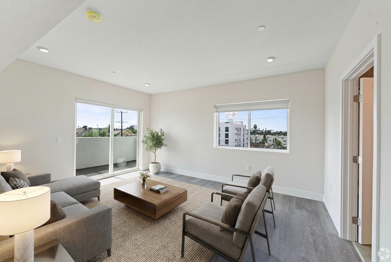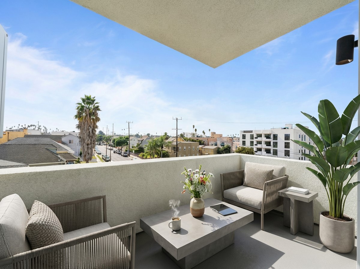 Offering some of the largest apartment homes in Koreatown, residences range from approximately 1,000 to over 1,400 square feet with open layouts, private balconies, and abundant natural light. Enjoy morning coffee on your balcony, unwind in spacious living areas, and take in views of the Los Angeles skyline.