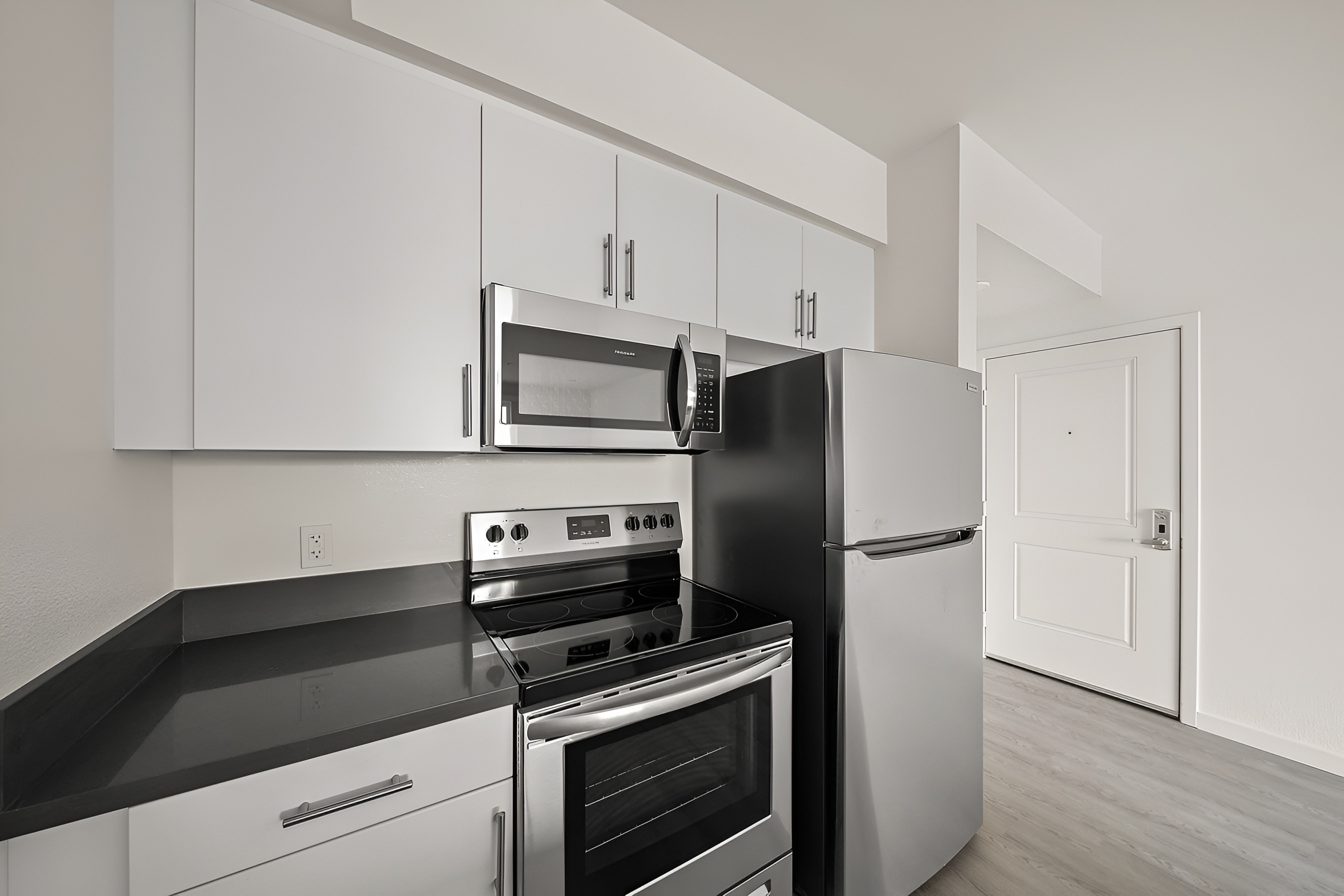 Choose from our spacious studios, one-bedroom plans—each designed with modern conveniences and open layouts. You'll love the clean, stylish interiors featuring central air, in-unit washer/dryer, wood-inspired flooring, brand new kitchens with sleek cabinetry and quartz countertops, full stainless steel appliances, as well as bright, sunlit spaces.